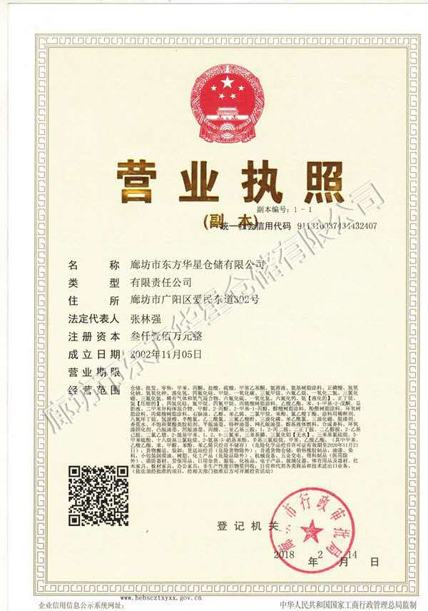 廊坊市東方華星倉儲有限公司成立于2002年11月,占地100畝,經廊坊市工商局注冊經河北省對外貿易局批準成立的外貿型企業。